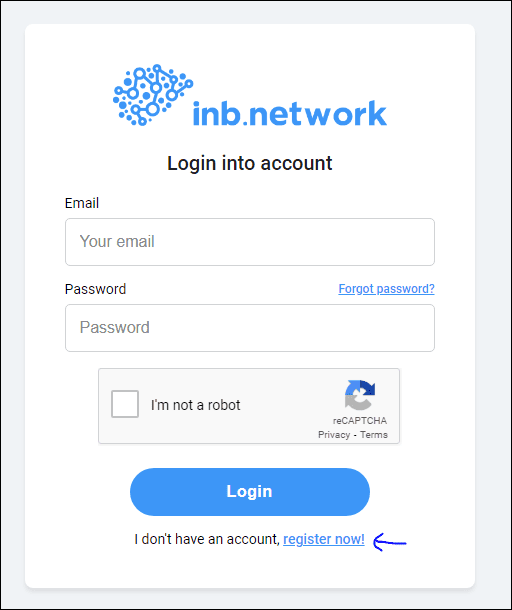 في حال اخترت التسجيل من خلال inb.network ستنبثق لك نافذة يجب عليك الضغط على register now ! كما هو موضح بالأسفل.